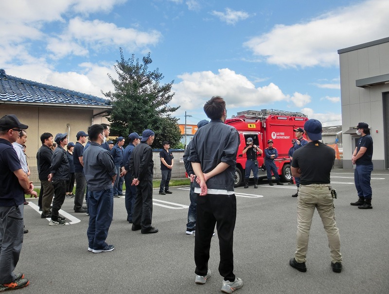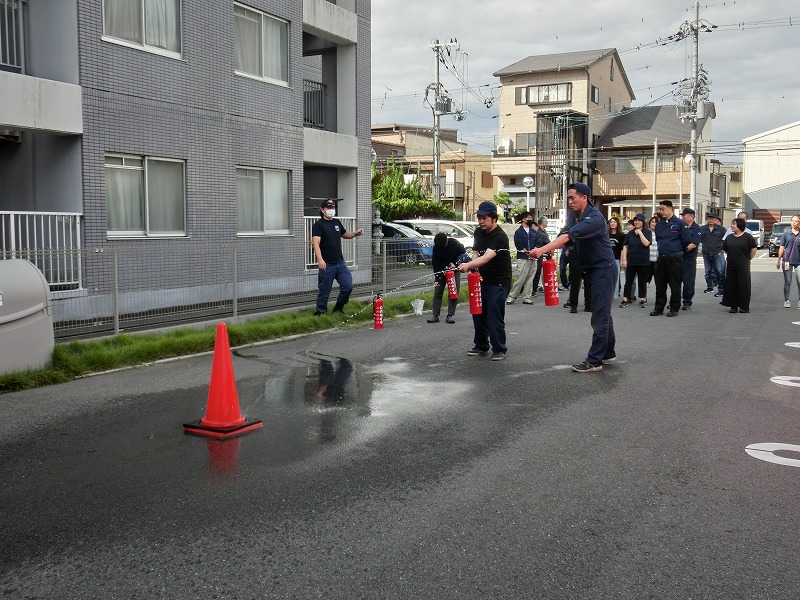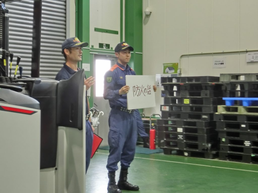 火災を想定した避難訓練と消火器訓練を行い、防火についての講話をしていただきました。